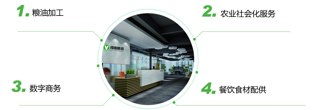 “四輔”:即以“糧油加工”、“農業社會化服務”、“數字商務”、“食材配供”為輔助業務。
